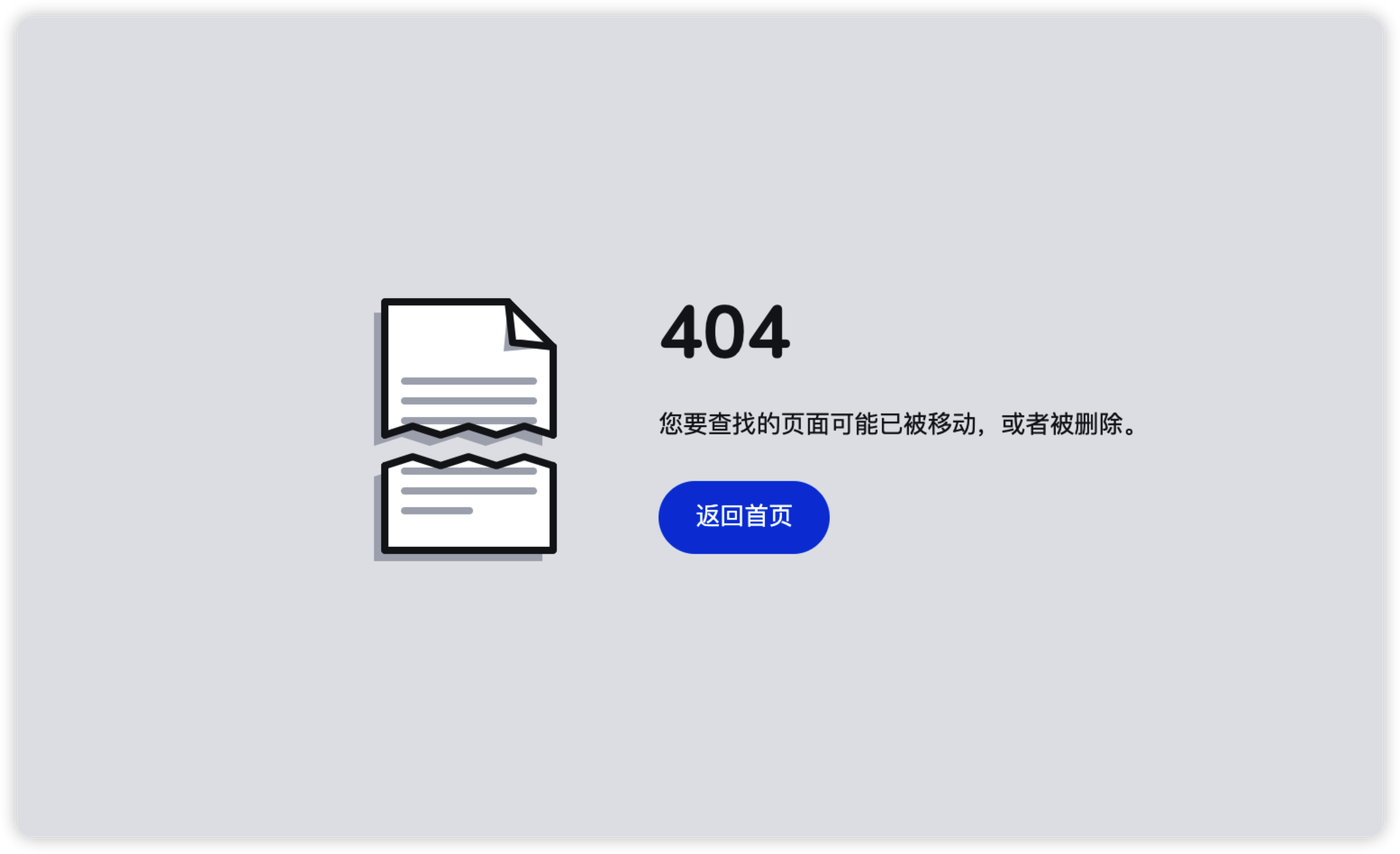 <html> <head> <meta charset="UTF-8"> <title>Ripped 404 Page Animation</title> <meta name="viewport" content="width=device-width, initial-scale=1, viewport-fit=cover"> <link rel='stylesheet' href='https://fonts.googleapis.com/css2?family=Nunito:wght@400;700&display=swap'> <style> * { border: 0; box-sizing: border-box; margin: 0; padding: 0; } :root { --hue: 223; --bg: hsl(var(--hue),10%,90%); --fg: hsl(var(--hue),10%,10%); --primary: hsl(var(--hue),90%,45%); --primary-down: hsl(var(--hue),90%,65%); --trans-dur: 0.3s; font-size: calc(16px + (24 - 16) * (100vw - 320px) / (2560 - 320)); } body { background-color: var(--bg); color: var(--fg); display: flex; font: 1em/1.5 Nunito, sans-serif; height: 100vh; transition: background-color var(--trans-dur), color var(--trans-dur); } main { display: grid; grid-gap: 3em 1.5em; margin: auto; max-width: 40em; padding: 3em 0; text-align: center; width: calc(100% - 3em); } h1 { font-size: 3em; line-height: 1; margin: 0 0 1.5rem; } p { margin: 0 0 1.5em; } .btn-link { background: var(--primary); border-radius: 1.5em; display: inline-block; outline: transparent; padding: 0.75em 1.5em; text-align: center; text-decoration: none; transition: background-color 0.15s linear; } .btn-link, .btn-link:visited { color: hsl(0,0%,100%); } .btn-link:focus-visible, .btn-link:hover { background: var(--primary-down); } .btn-link:hover { text-decoration: none; } .paper { display: block; margin: auto; overflow: visible; width: 100%; max-width: 224px; height: auto; } .paper__fill { fill: hsl(0,0%,100%); } .paper__outline, .paper__lines { transition: stroke var(--trans-dur); } .paper__outline { stroke: hsl(var(--hue),10%,10%); } .paper__lines { stroke: hsl(var(--hue),10%,70%); } .paper__shadow { fill: hsl(var(--hue),10%,70%); transition: fill var(--trans-dur); } .paper__top, .paper__bottom, .paper__tear, .paper__tear-fill { animation: paperTop 1.25s cubic-bezier(0.77,0,0.18,1); } .paper__top, .paper__bottom { transform-origin: 0 148px; transition: transform var(--trans-dur) cubic-bezier(0.77,0,0.18,1); } .paper__top { transform: translate(0,8px); } .paper__bottom { animation-name: paperBottom; transform: translate(0,42px); } .paper__tear, .paper__tear-fill { animation-timing-function: cubic-bezier(0.32,0,0.67,0); } .paper__tear { animation-name: paperTear; stroke-dashoffset: 0; } .paper__tear-fill { animation-name: paperTearFill; } .paper__outline:hover .paper__top, .paper__outline:hover .paper__bottom { transform: translate(0,25px); } /* Dark theme */ @media (prefers-color-scheme: dark) { :root { --bg: hsl(var(--hue),10%,25%); --fg: hsl(var(--hue),10%,90%); } .paper__shadow:first-child { fill: hsl(var(--hue),10%,15%); } } /* Beyond mobile */ @media (min-width: 768px) { main { grid-template-columns: 1fr 2fr; align-items: center; text-align: left; } .paper { max-width: 300px; } } /* Animations */ @keyframes paperTop { from, 40% { animation-timing-function: cubic-bezier(0.32,0,0.67,0); transform: translate(0,25px) rotate(0); transform-origin: 61px 148px; } 70% { animation-timing-function: cubic-bezier(0.33,1,0.67,1.5); transform: translate(0,25px) rotate(-5deg); transform-origin: 61px 148px; } to { transform: translate(0,8px) rotate(0); transform-origin: 0 148px; } } @keyframes paperBottom { from, 40% { animation-timing-function: cubic-bezier(0.32,0,0.67,0); transform: translate(0,25px) rotate(0); transform-origin: 61px 148px; } 70% { animation-timing-function: cubic-bezier(0.33,1,0.67,1.5); transform: translate(0,25px) rotate(5deg); transform-origin: 61px 148px; } to { transform: translate(0,42px) rotate(0); transform-origin: 0 148px; } } @keyframes paperTear { from, 40% { stroke-dashoffset: -198; } 70%, to { stroke-dashoffset: 0; } } @keyframes paperTearFill { from, 40% { width: 187px; } 70%, to { width: 0; } }</style> </head> <body> <main> <div> <svg class="paper" viewBox="0 0 300 300" width="300px" height="300px" role="img" aria-label="A piece of paper torn in half"> <g class="paper__outline" fill="none" stroke="hsl(0,10%,10%)" stroke-width="8" stroke-linecap="round" stroke-linejoin="round" transform="translate(61,4)"> <g class="paper__top" transform="translate(0,25)"> <polygon class="paper__shadow" fill="hsl(0,10%,70%)" stroke="none" points="0 148,0 0,137 0,187 50,187 148,155 138,124 148,93 138,62 148,31 138" transform="translate(-12,12)" /> <rect class="paper__tear-fill" fill="hsl(0,0%,100%)" stroke="none" x="0" y="137" width="0" height="23px" /> <polygon class="paper__fill" fill="hsl(0,0%,100%)" stroke="none" points="0 148,0 0,137 0,187 50,187 148,155 138,124 148,93 138,62 148,31 138" /> <polygon class="paper__shadow" fill="hsl(0,10%,70%)" stroke="none" points="137 0,132 55,187 50,142 45" /> <polyline points="137 0,142 45,187 50" /> <polyline points="0 148,0 0,137 0,187 50,187 148" /> <g class="paper__lines" stroke="hsl(0,10%,70%)"> <polyline points="22 88,165 88" /> <polyline points="22 110,165 110" /> <polyline points="22 132,165 132" /> </g> <polyline class="paper__tear" points="0 148,31 138,62 148,93 138,124 148,155 138,187 148" stroke-dasharray="198 198" stroke-dashoffset="-198" /> </g> <g class="paper__bottom" transform="translate(0,25)"> <polygon class="paper__shadow" fill="hsl(0,10%,70%)" stroke="none" points="0 148,31 138,62 148,93 138,124 148,155 138,187 148,187 242,0 242" transform="translate(-12,12)" /> <polygon class="paper__fill" fill="hsl(0,0%,100%)" stroke="none" points="0 148,31 140,62 148,93 138,124 148,155 138,187 148,187 242,0 242" /> <polyline points="187 148,187 242,0 242,0 148" /> <g class="paper__lines" stroke="hsl(0,10%,70%)"> <polyline points="22 154,165 154" /> <polyline points="22 176,165 176" /> <polyline points="22 198,94 198" /> </g> <polyline class="paper__tear" points="0 148,31 138,62 148,93 138,124 148,155 138,187 148" stroke-dasharray="198 198" stroke-dashoffset="-198" /> </g> </g> </svg> </div> <div> <h1>404</h1> <p>您要查找的页面可能已被移动,或者根被删除。</p> <a class="btn-link" href="/">返回首页</a> </div> </m