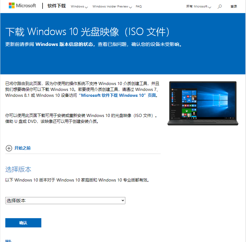 而有趣的是,如果你在手机端访问 https://www.microsoft.com/zh-cn/software-download/windows10/ ,那么它也会自动跳转到 https://www.microsoft.com/zh-cn/software-download/windows10ISO/ 。